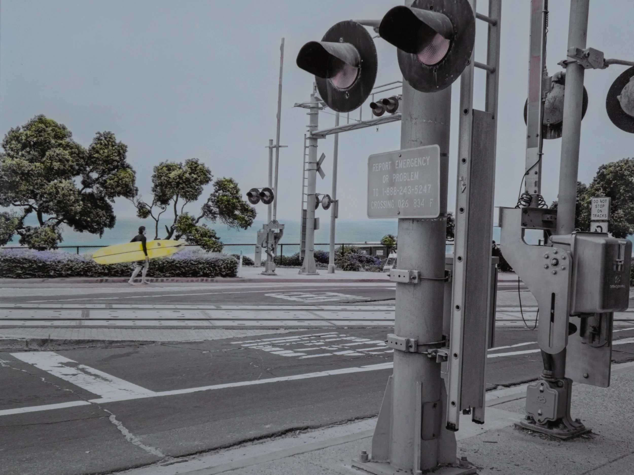 Gone Surfin’Del Mar, CAHand-painted Black & White Photograph in Oils / 10x8(Image available hand-painted in various sizes)