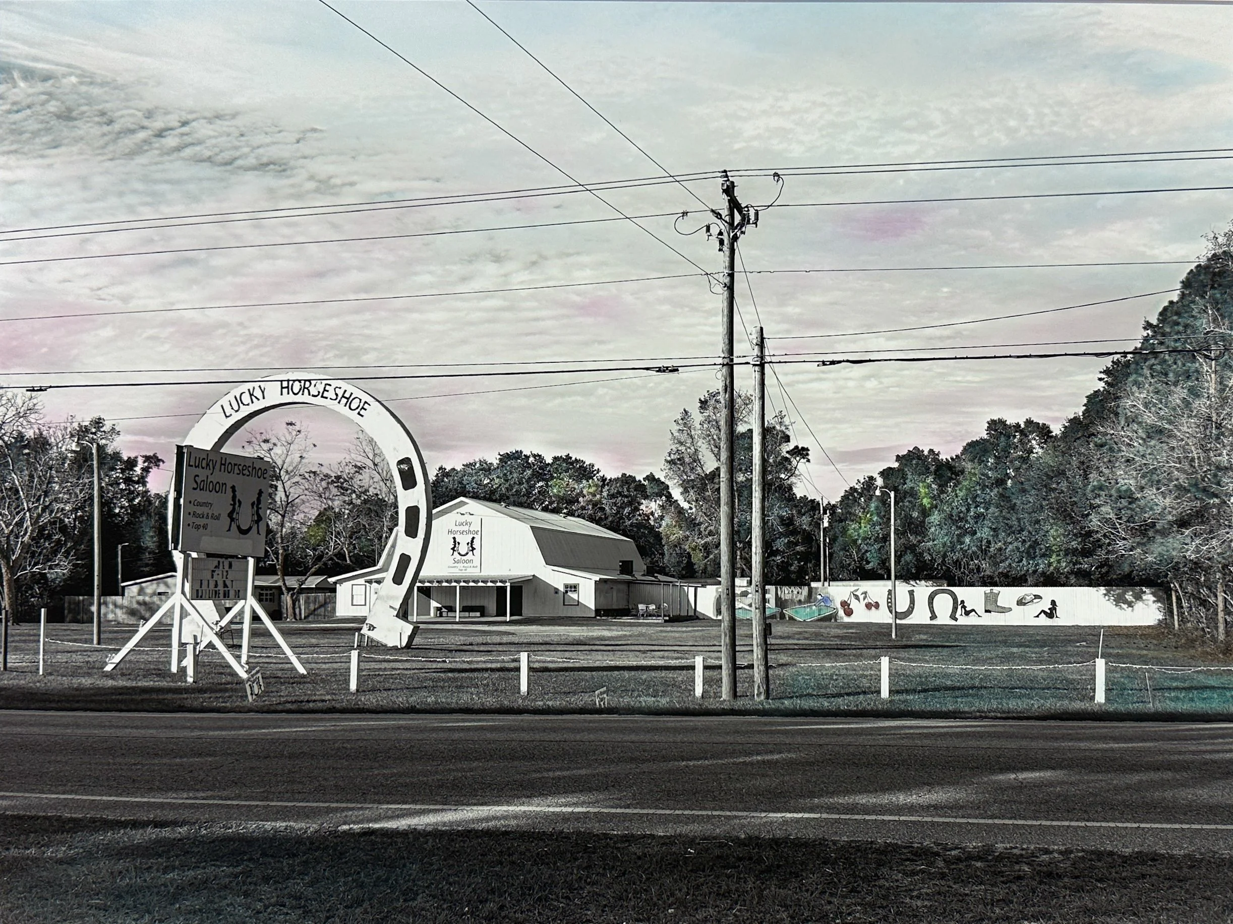 With a Little LuckThe Lucky Horse Saloon, Near Fairhope, ALHand-painted Black and White Photograph in Pastels / 20x16